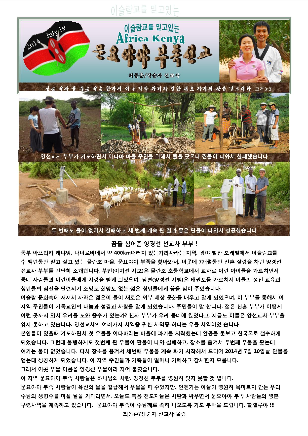 주님의 귀하신 이름으로 케냐에서 문안인사 드립니다. 저희는 70일 동안 뉴욕 방문을 잘 마치고 돌아 왔습니다. 부족한 저희를 위해서 기도하시고 후원해 주신 성광교회 성도님들께 감사를 드립니다.