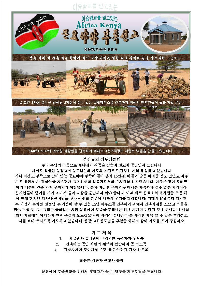 감사를 드리면서 9월 기도서신 첨부파일에 담아서 보내 드립니다.