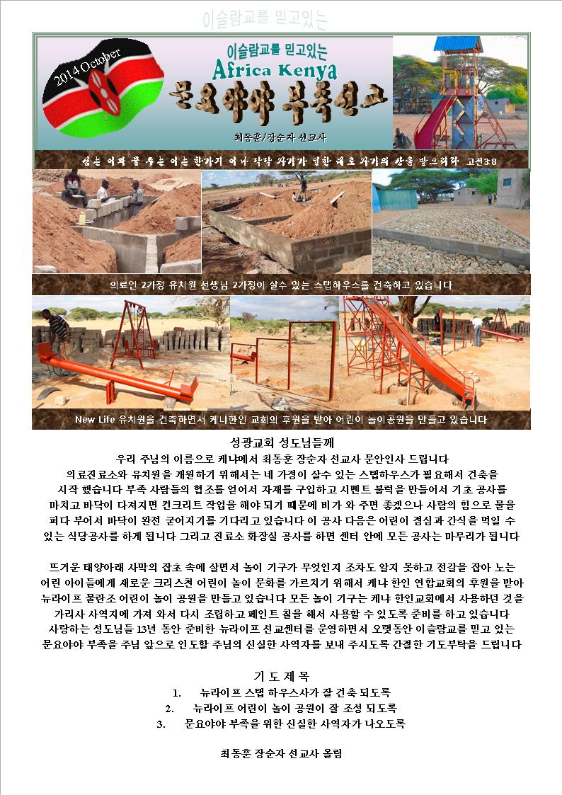 부탁드리면서 10월 기도서신 보내 드립니다