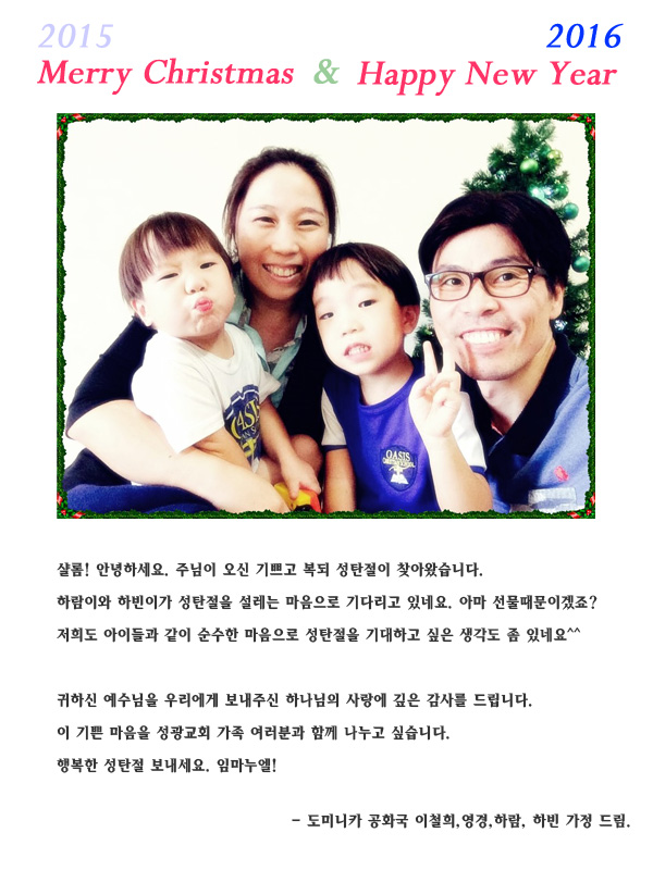 - 이철희,영경,하람,하빈 드림.