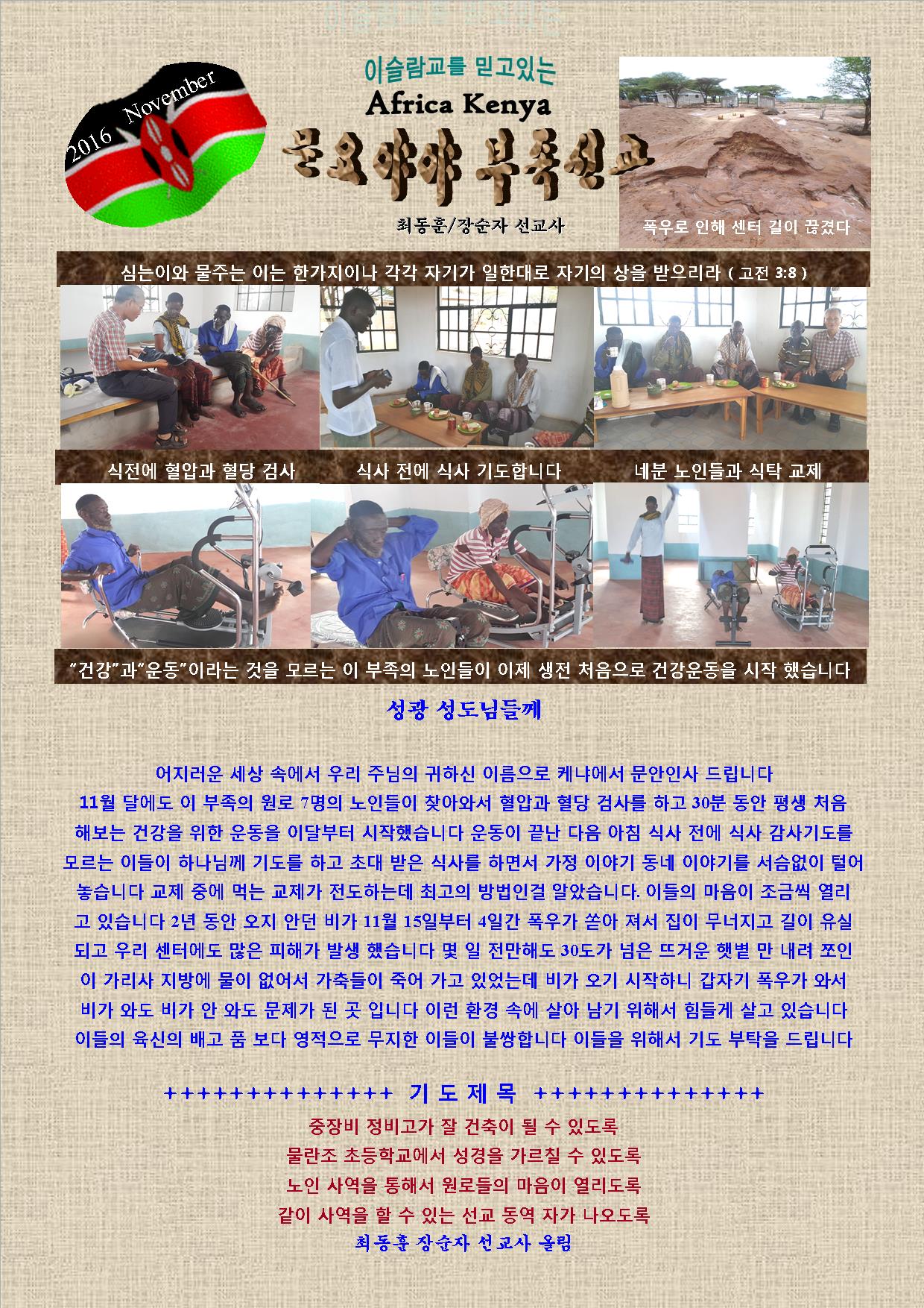귀하신 주님의 이름으로 케냐에서 문안드립니다