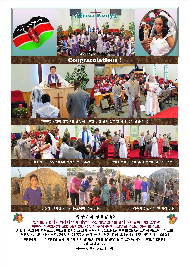 12월 8일 피터 아루고 목사가 결혼을 하게 되어 72세인 김 권사님은